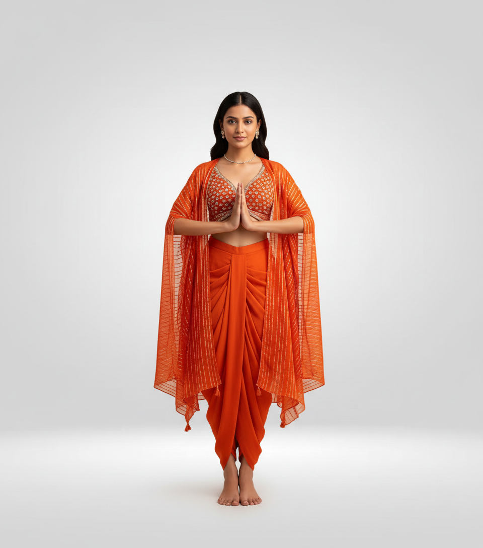 Instantly visualize yourself in exquisite Indian silhouettes with AI couture.